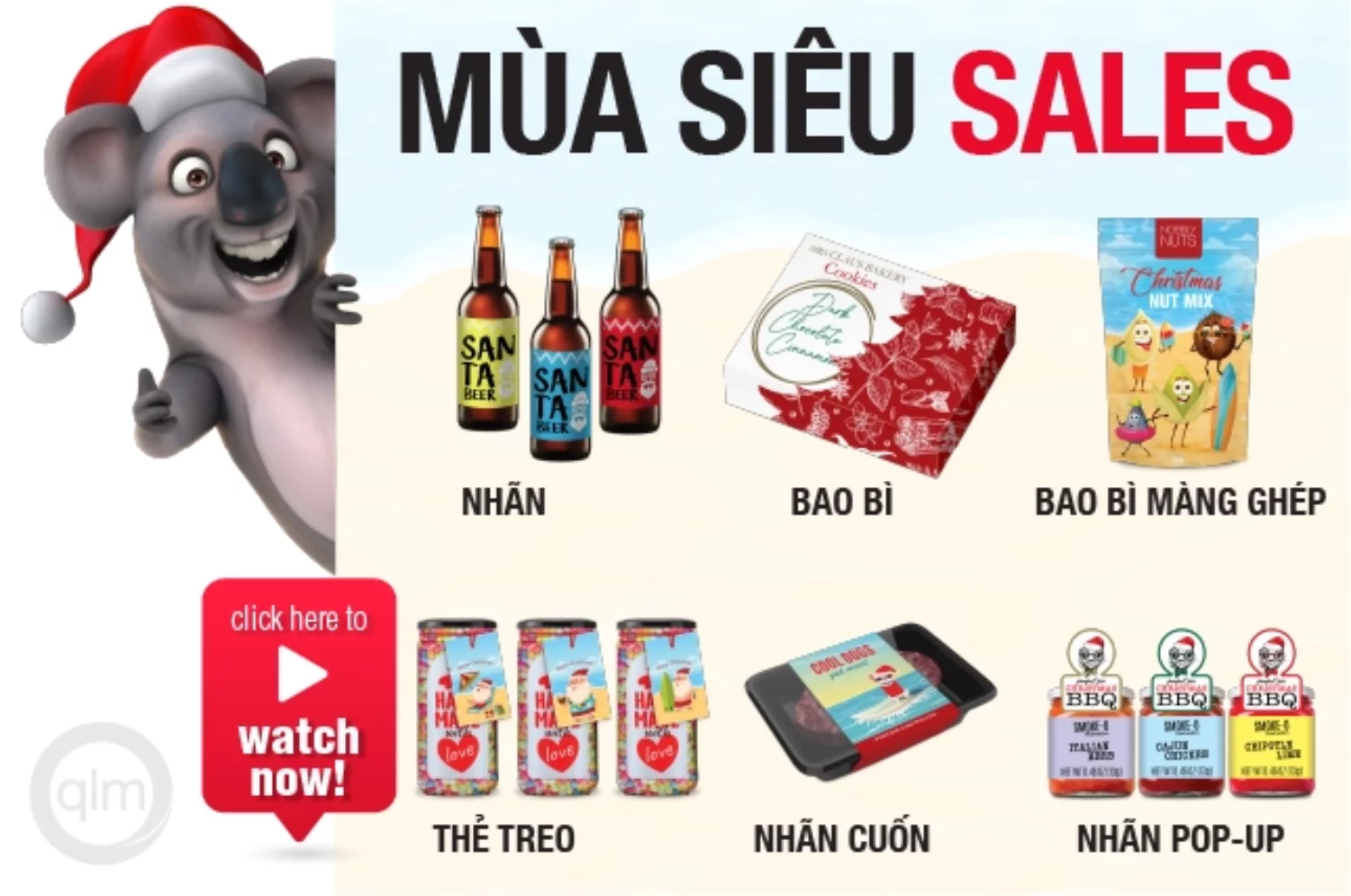 | Bạn có 2 lựa chọn tuyệt vời cho nhãn theo mùa và NHÃN SALE: 1) thiết kế nội dung cụ thể cho đợt sale hoặc mùa đó, hoặc 2) thiết kế nội dung chung chung hơn có thể áp dụng cho nhiều chiến dịch Chủ đề Giáng sinh và ngày lễ thường được ứng dụng rộng rãi cho phiên bản giới hạn hoặc quà tặng. Việc sử dụng ông già Noel và các họa tiết Giáng sinh khác đặc biệt thú vị khi kết hợp với chủ đề bãi biển cùng những yếu tố phản ánh lễ Giáng sinh rất khác mà chúng ta trải nghiệm ở Nam bán cầu. Các thiết kế khác kết hợp hoa văn và mảng màu liên quan đến mùa lễ hội, nhưng không nhất thiết phải dành riêng cho Giáng sinh. Dù bạn chọn gì đi nữa, hãy nhớ quảng bá trên các phương tiện truyền thông xã hội, nhớ tạo dấu ấn ‘độc quyền’ hoặc đặc biệt riêng cho mẫu thiết kế và không khí vui vẻ. |